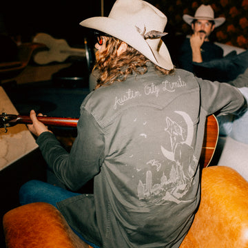 Poncho and Austin City Limits have teamed up to celebrate over 50 years of groundbreaking music television. This limited-edition denim features a weathered Worn by Legends design on the back with Austin City Limits front and center above the pocket. Proceeds from this collab benefit ACL to keep the cameras rolling.