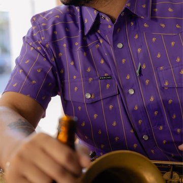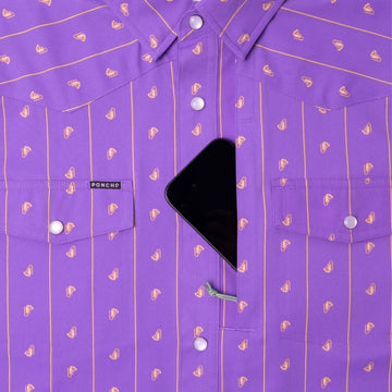 Mardi Gras ready! Our classic western shirts are made with the same breathable, lightweight, and quick-drying fabric you love from Poncho, so you’ll be comfortable until the cows come home. It’s got built-in sun-protection and tons of functional details to help while you’re working up a sweat. Plus, we’ve added pearl snaps and western styling, so you’ll be fit for any frontier.
